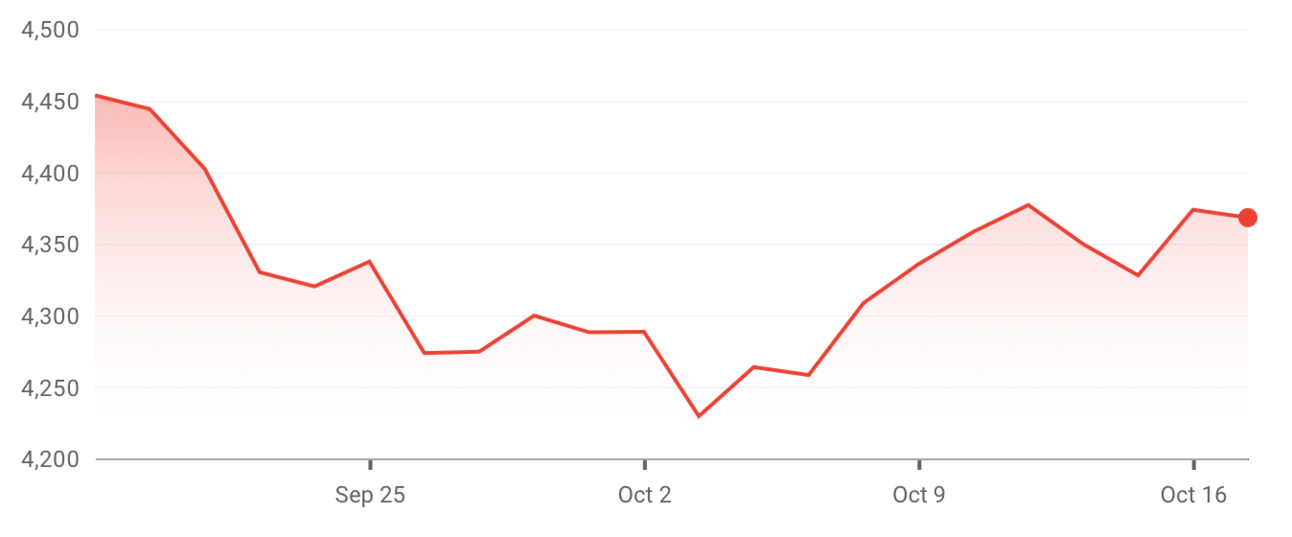 A September slowdown saw much of those gains revert to lower levels between 4,200-4,300 points, but this trend in October could be the beginning of the index finding a middle ground.