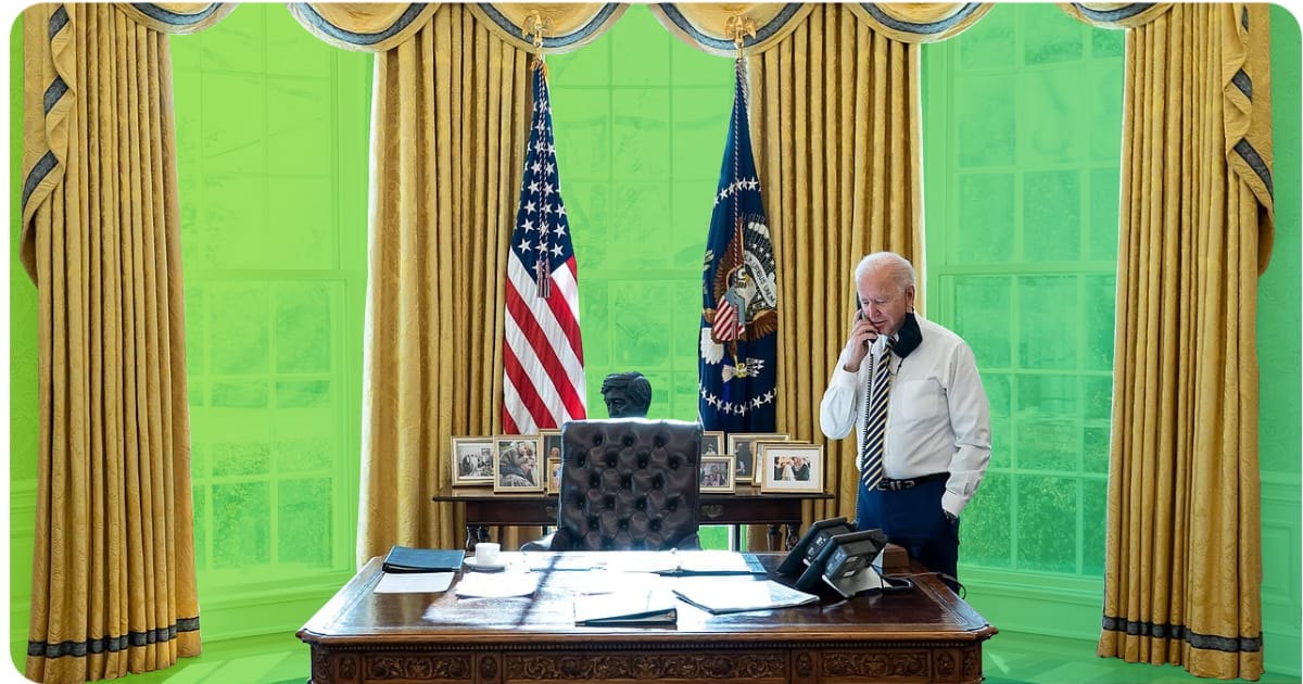 President Biden speaking on the phone, via rawpixel